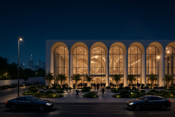This Exhibition Center is a striking retail and display space located in Bhiwandi, envisioned as a central hub for showcasing premium furniture and lifestyle products. Developed by Bhumi World, the design takes inspiration from the graceful form of arches—symbolizing openness, flow, and timeless architectural beauty. These curved elements are used to create a fluid and inviting spatial experience, blurring the lines between structure and display. The Exhibition Center stands as a sculptural presence in the commercial landscape, designed to engage, inspire, and elevate the retail environment.